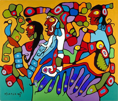 Norval Morrisseau Norval Morrisseau was one of the most original and important artists this country has ever produced. He was also one of Canada's most internationally known artists. Morrisseau, who spent a large part of his life in Red Lake, Ontario, was the first to paint his people's cultural heritage and, because of his work, the Woodland Indian School of Art evolved. He is the sole originator of the style. The myths, history, and environmental truths portrayed in his work have no precedence in the world. The genius of his paintings speaks to us of the past and cautions us about the future. Combined with legends are historical facts relating to early native history and archaeological theory. Norval Morrisseau is considered one of the greatest Canadian painters of all time and is placed alongside Tom Thomson and Emily Carr. He was known as Copper Thunderbird, the Aboriginal Canadian artist. And he was also known as the "Picasso of the North", creating works depicting the legends of his people, the cultural and political tensions between native Canadian and European traditions, his existential struggles, and his deep spirituality and mysticism. His style is characterized by thick black outlines and bright colors. He founded the Woodlands School of Canadian art and was a prominent member of the “Indian Group of Seven.